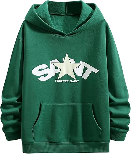 Men's Letter Graphic Hoodie Long Sleeve Sweatshirt Pullover Tops with Pocket