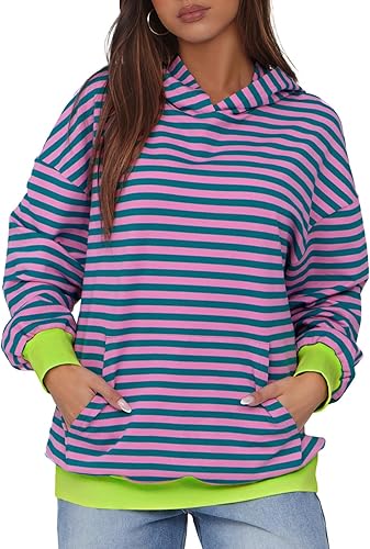 Oversized Hoodies for Women Striped Sweatshirt Long Sleeve Pullover Tops 2024 Trendy Y2k Clothes With Pocket