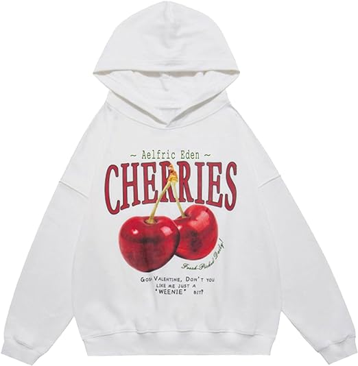 Cherry Graphic Hoodies Streetwear Hooded Sweatshirt Pullover Hip Hop Fashion Hoodies Unisex